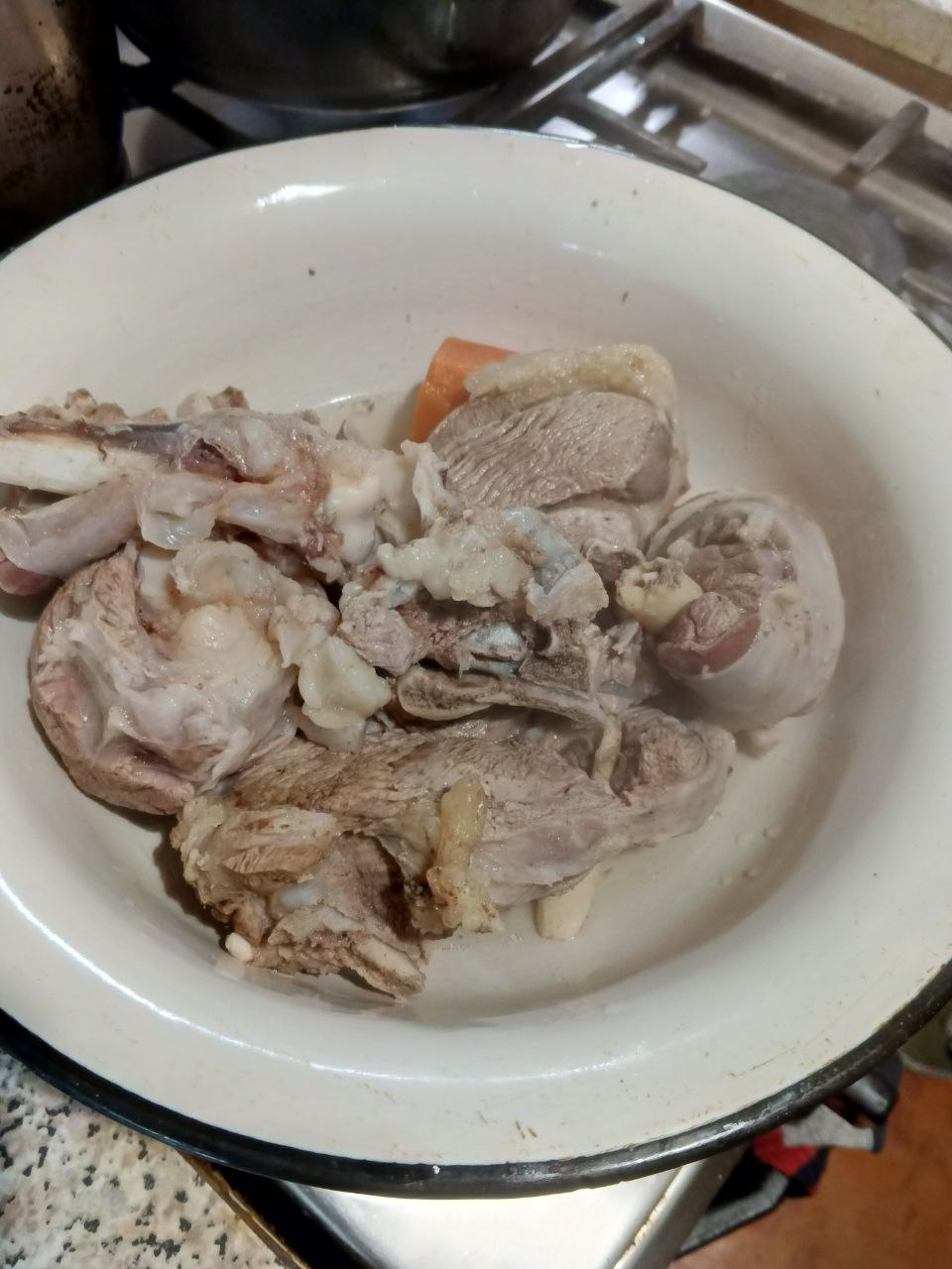 Мясо отделяем от костей и нарезаем , морковь тоже