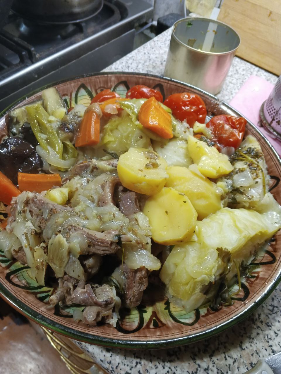 Мясо отраливается от костей , картошка и капустаи все овощи пропитались ароматами . Всё в собственном соку!