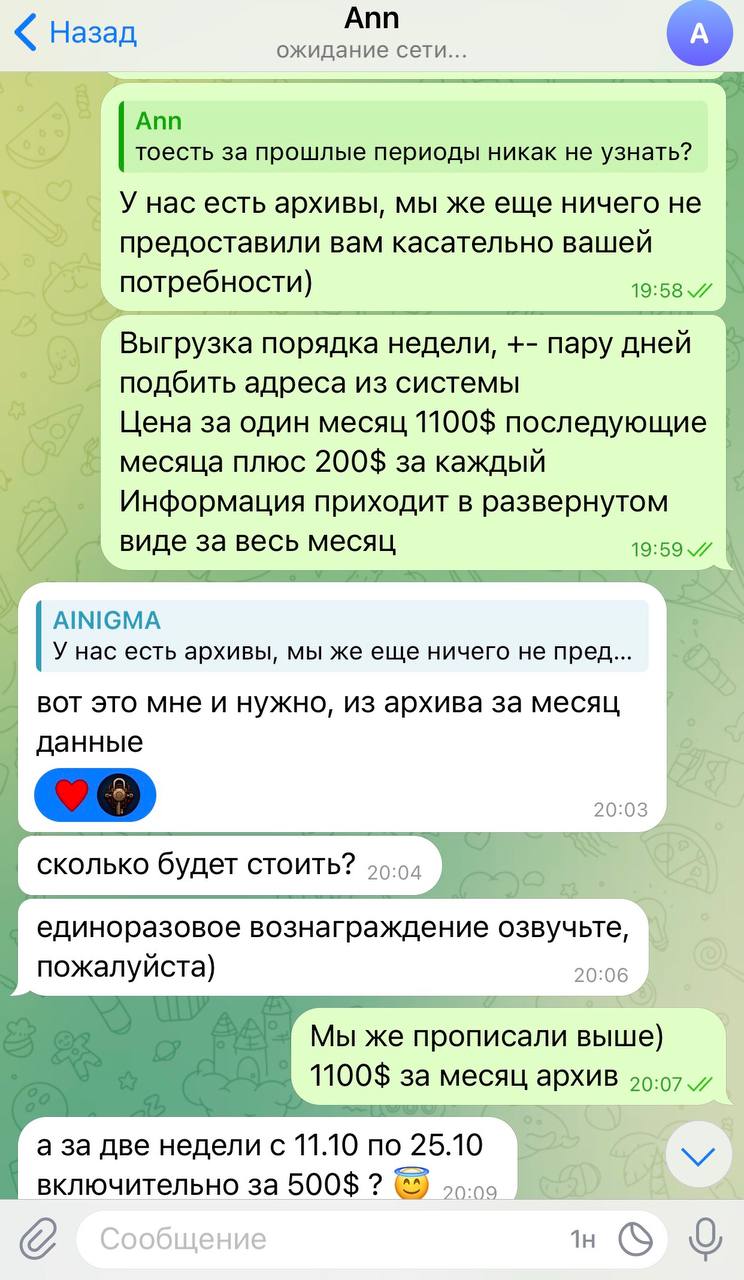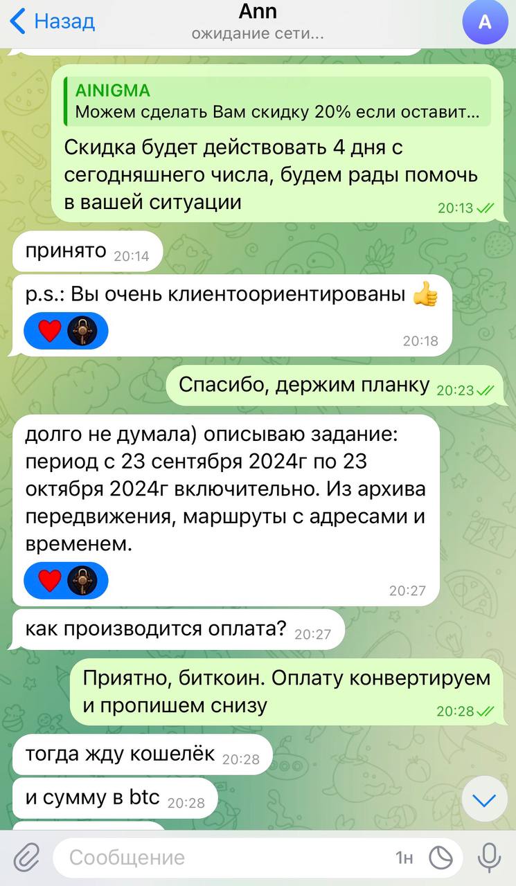 3. Контакты ответчика: Telegram: AINIGMA1AINIGMA