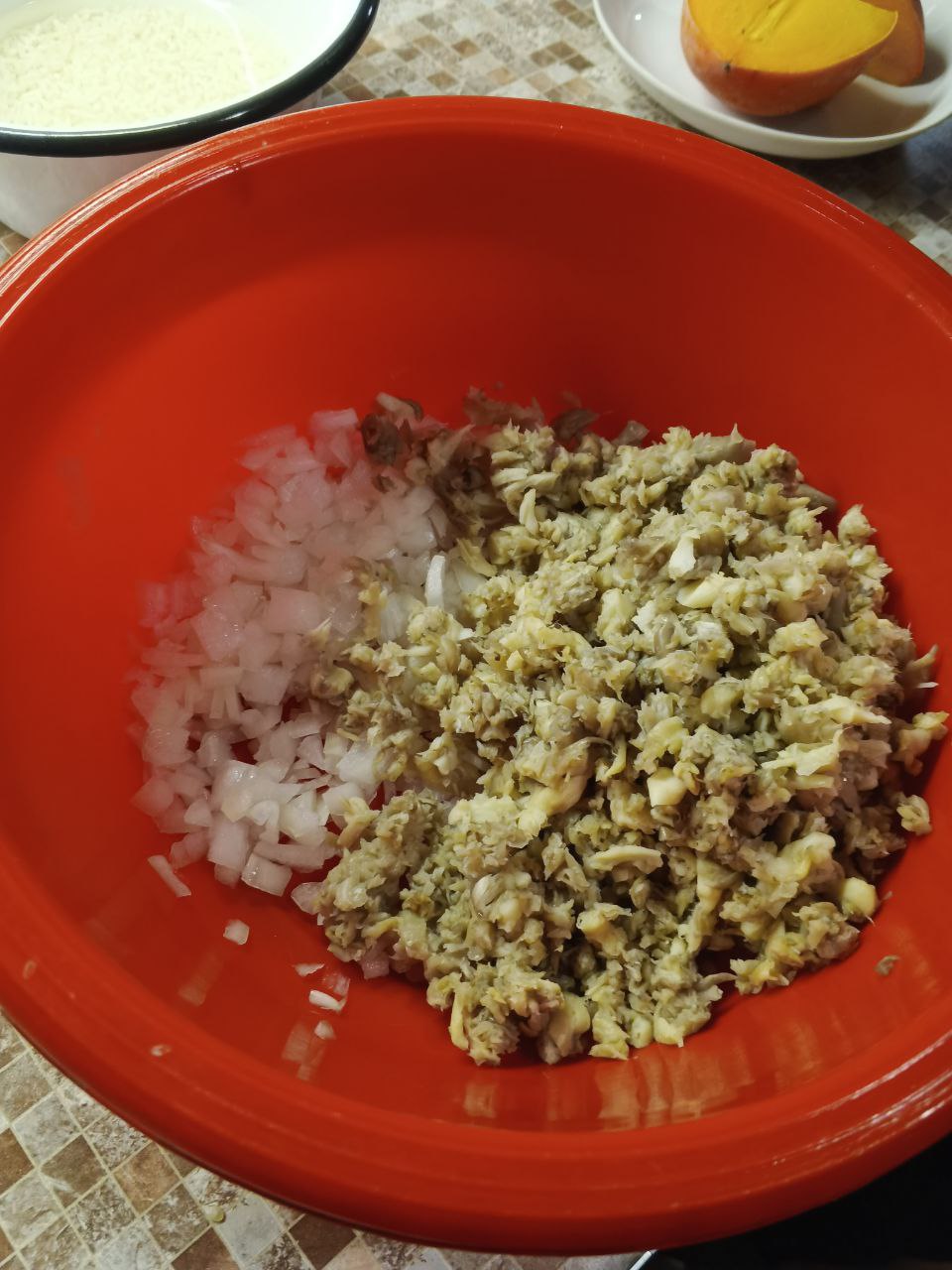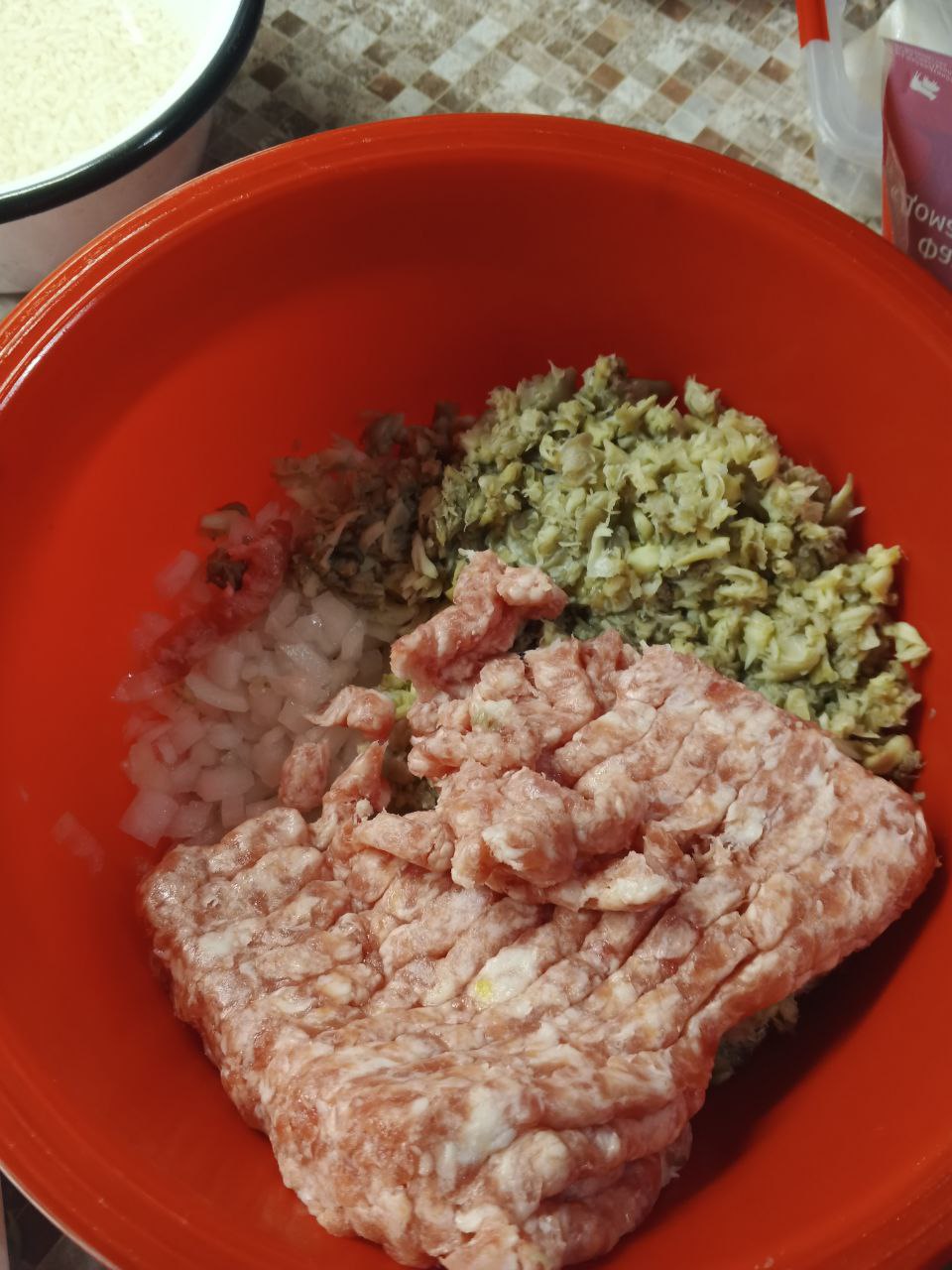 Вешенки пропукаем через мясорубку на средне-крупной решётке