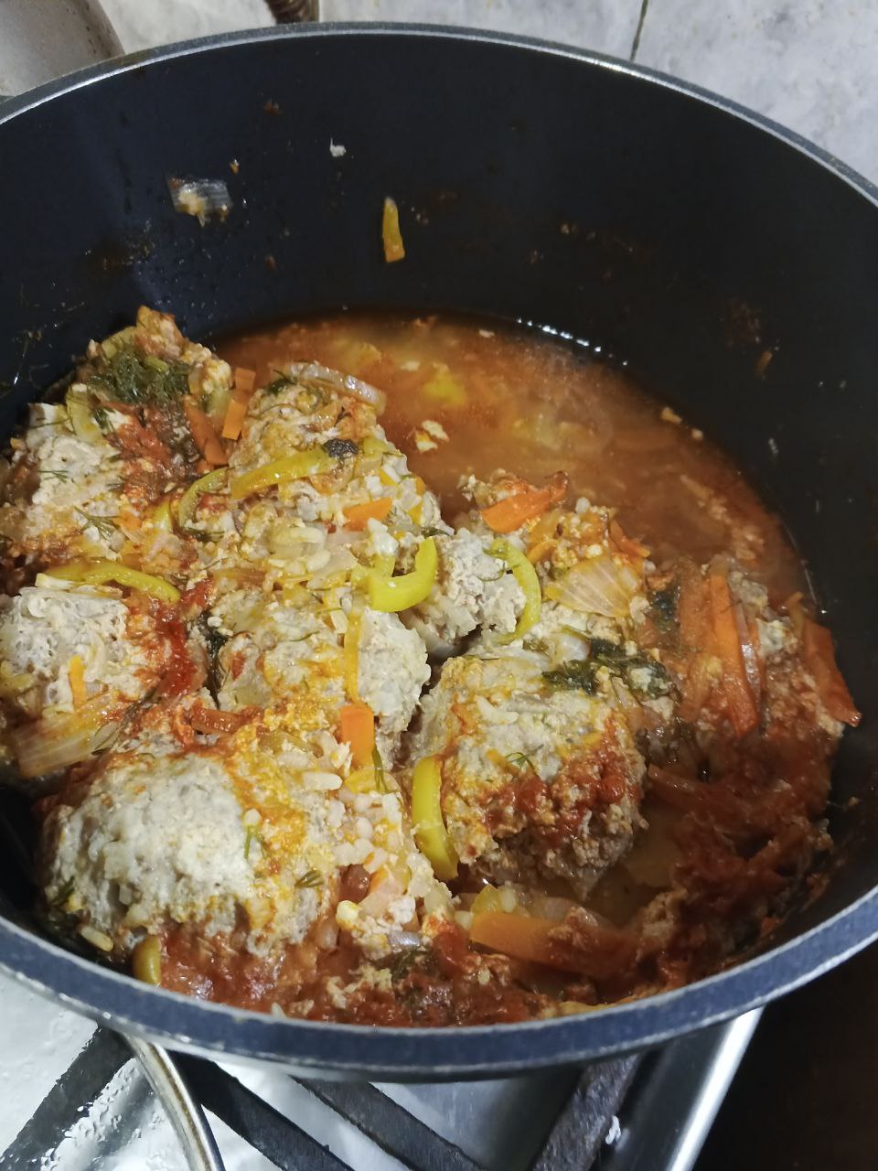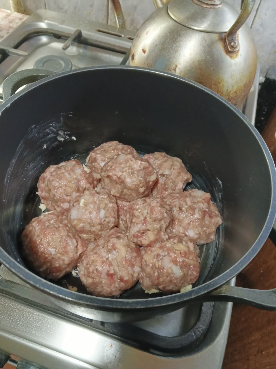 Дно казана смазываем сливочным маслом , из фарша формируем тефтели и выладываем на дно казана