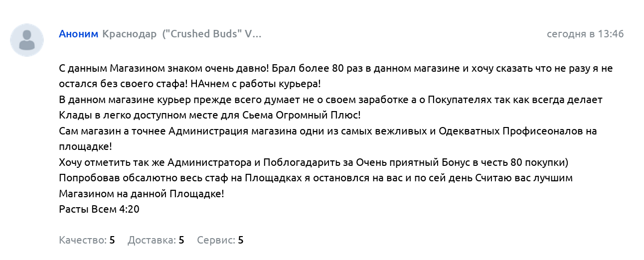 В какой-то момент я вспомнил про сайт. На тот момент там уже был порядочный сервис. Всегда все было ровно и по весу, и по качеству и пользовательский интерфейс был довольно удобный. В этот раз мне зашла такая система покупки. Да, конечно, иногда случалась проблемы, но практически всегда они заканчивались тем, что устраивало и меня и продавца. Кто бы что не говорил, но в те времена по крайней мере у нас ги.дра была нацелена больше на клиента нежели на шоп. Там был порядок были правила которых старались придерживается. Это, наверное, и зацепило.